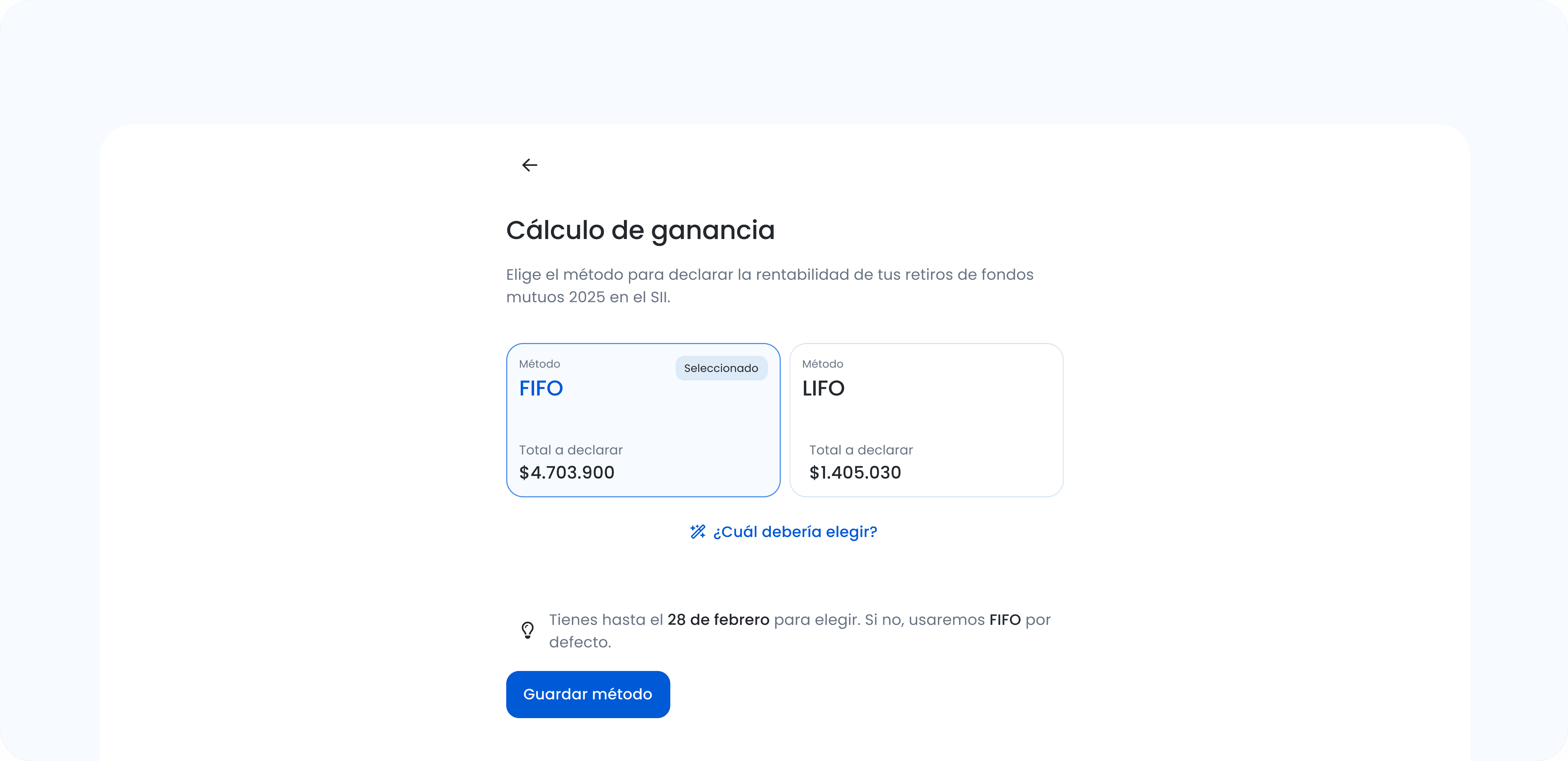 Tienes hasta el 5 de marzo para elegir qué método declaramos al SII por tus retiros de fondos mutuos.